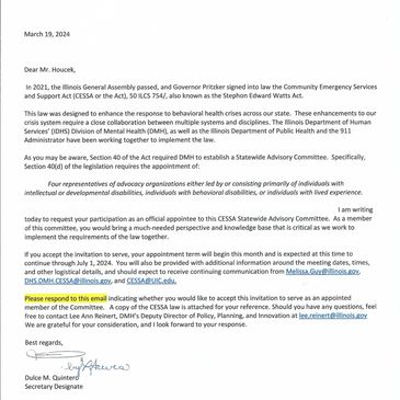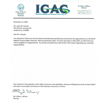 -Legislation Advocation: Advocating (contacting Illinois House Representatives, State Senators and Governor) for Illinois legislation regarding those on the Autism Spectrum and those with Invisible Disabilities.